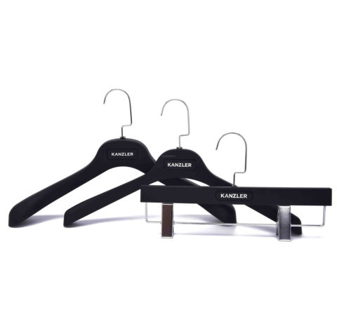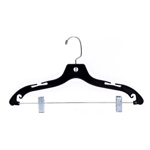 Store Display Custom LOGO Black Plastic Clothes Hanger With Clips