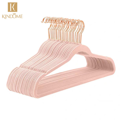 卸売高品質ローズゴールドフック省スペース滑り止めベルベットコートハンガーハンガー